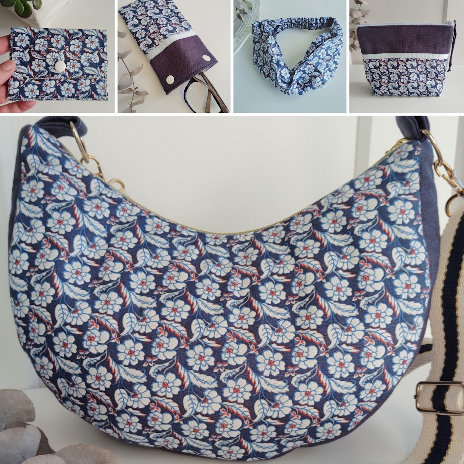 Ensemble sac + accessoires aux choix – Jasmin indigo