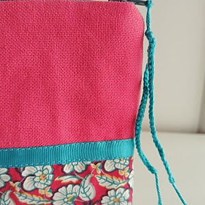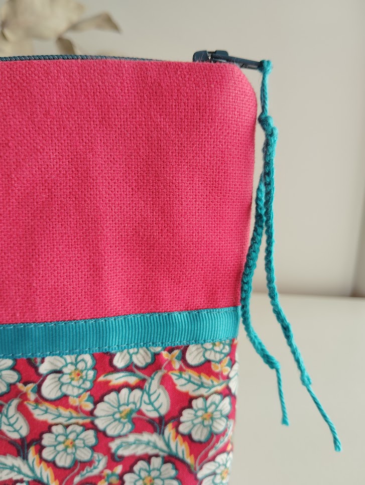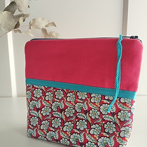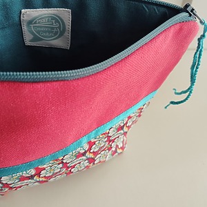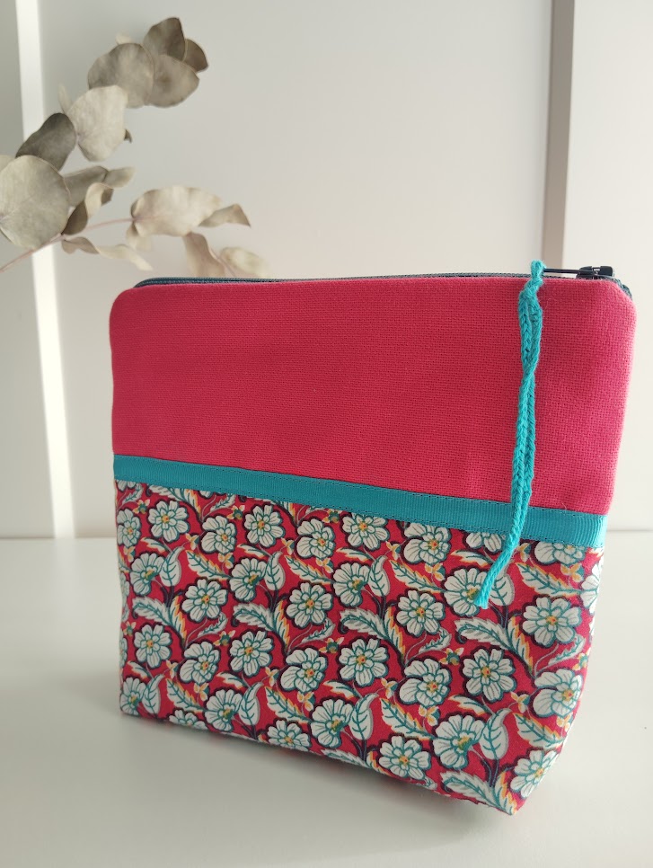 Cette trousse est rehaussé d’un ruban gros grain et d’une tirette en fil de coton fabriqué au crochet pour facilité son ouverture. Le tout molletonné et doublé pour bien protège vos objets, un accessoire utile au quotidien. Confectionné entièrement dans mon atelier, je porte une attention particulière aux associations de matières, couleurs et imprimés.