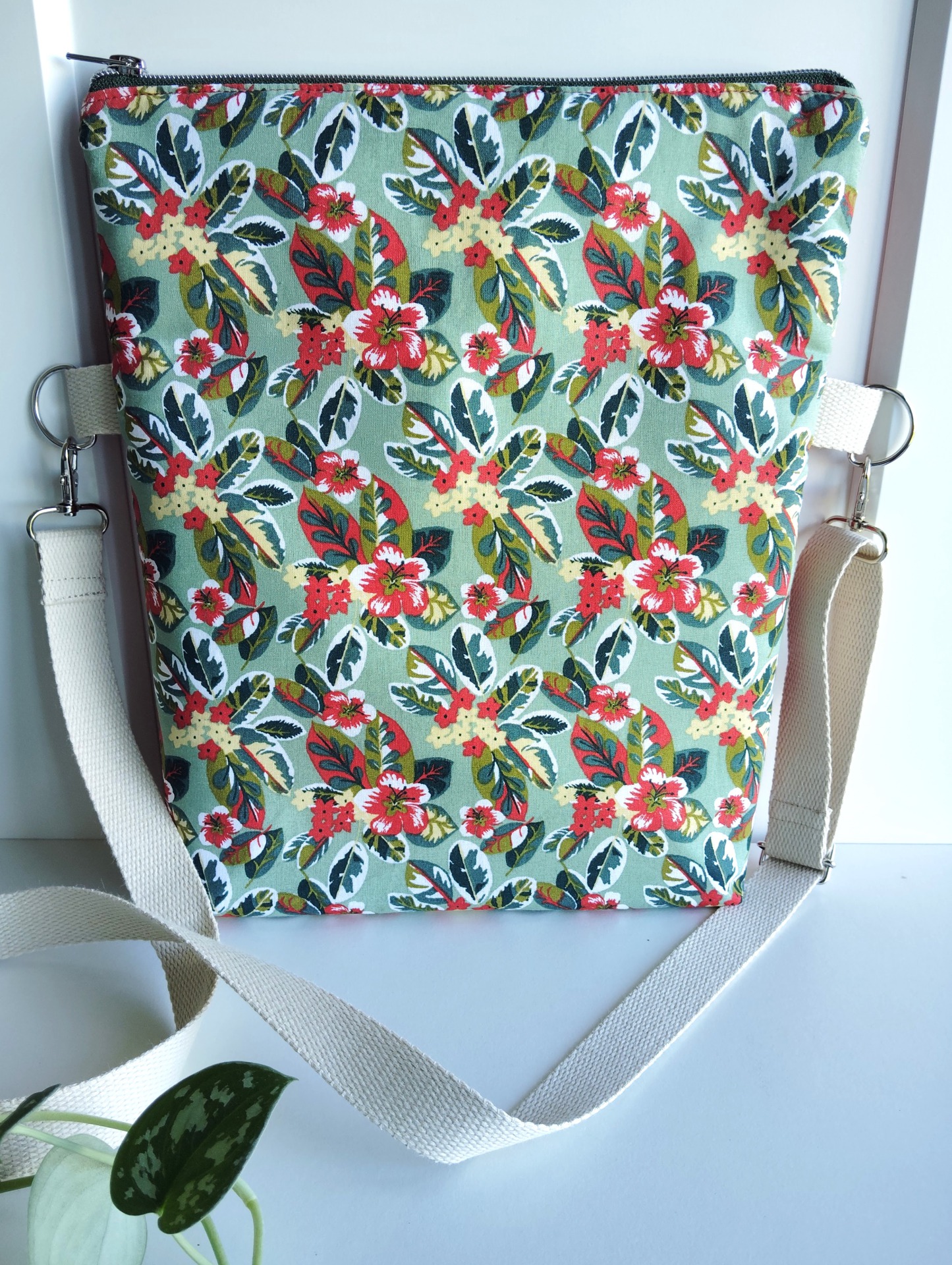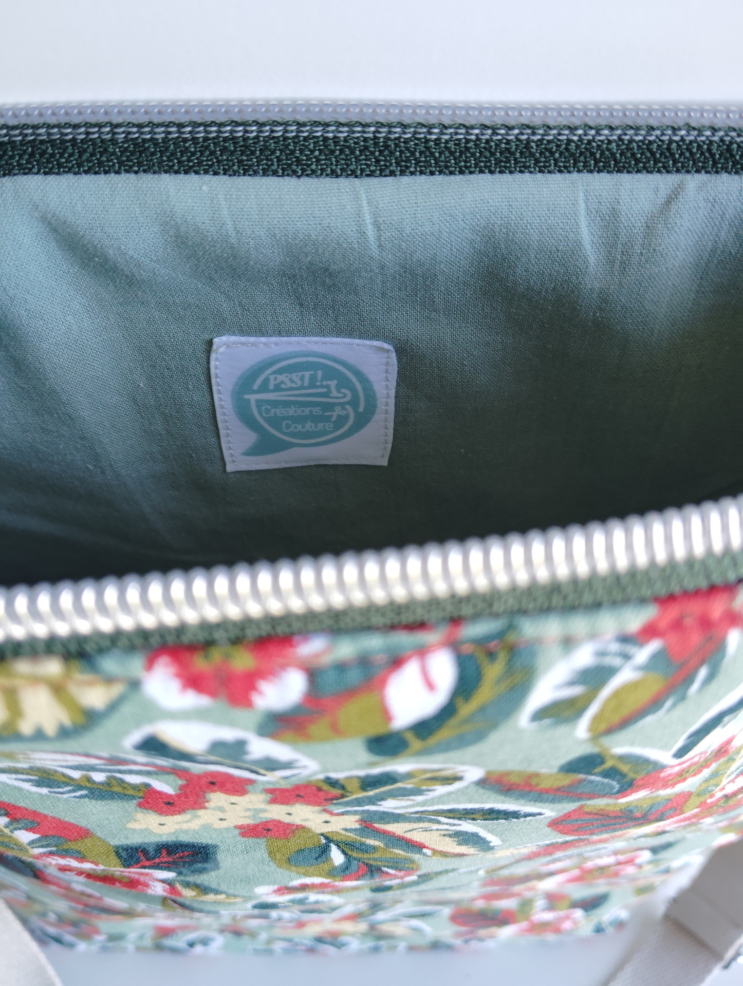 Le sac double face ou sac deux en un est un classique de chez PSST !..Créations. Vous pouvez le porter de deux manière selon votre humeur : Le coté ou le tissu imprimé est majoritaire ou le coté sur le quel le tissu uni domine.