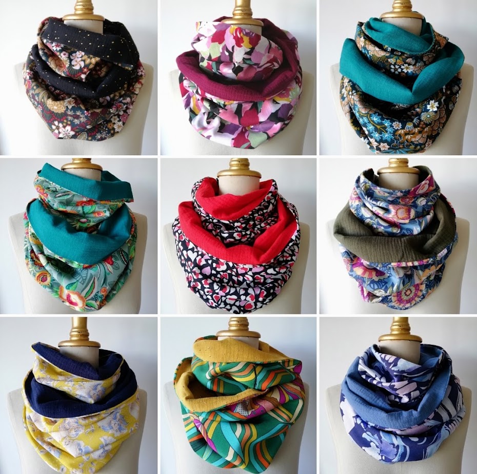 Pratique il s’enroule autour du cou tout en douceur et avec style. La viscose est un tissus fluide, léger, brillant, robuste et particulièrement agréable à porter. Les imprimées aux couleurs flamboyantes permettent de rehausser vos vestes et manteaux avec peps. La doublure en double gaze unie parfois rehaussé de petits pois dorés est toute aussi légère. Cela procure à ce tour de cou tenu et légèreté. Venez faire votre choix, vous trouverez forcément le vôtre assorti à votre tenue !