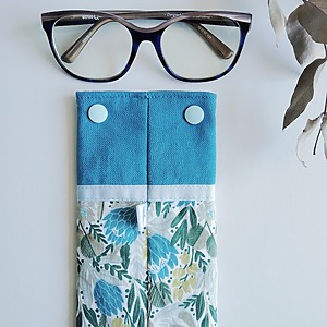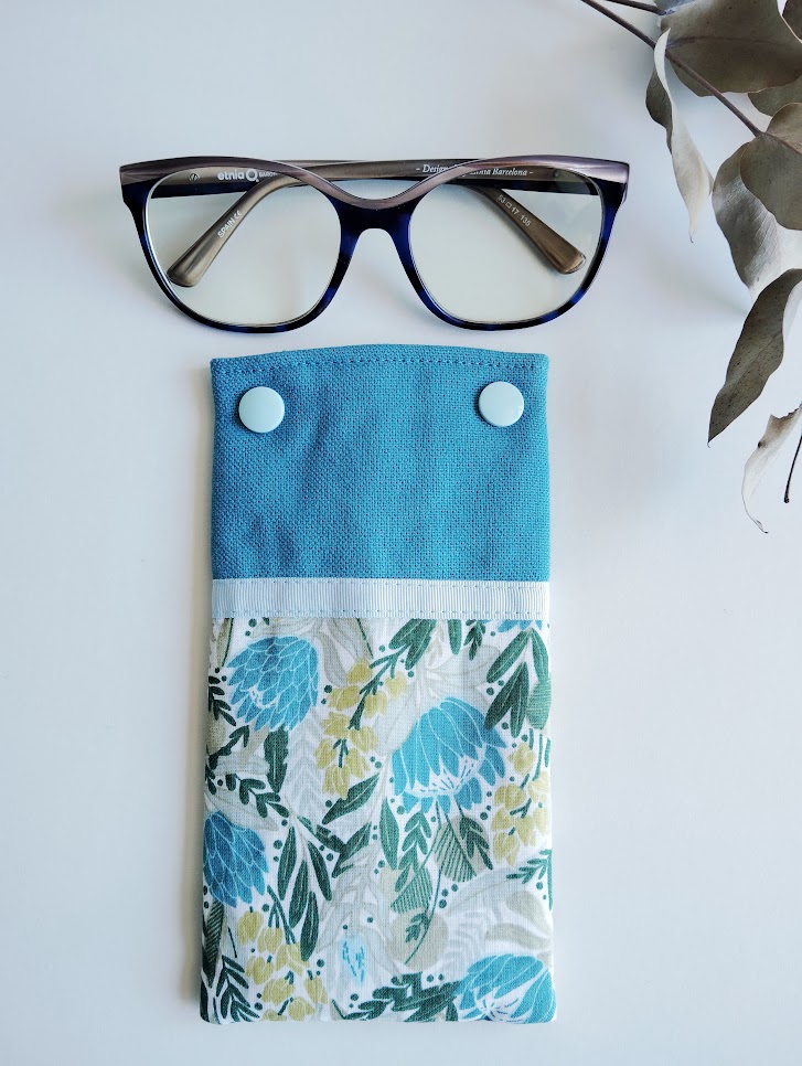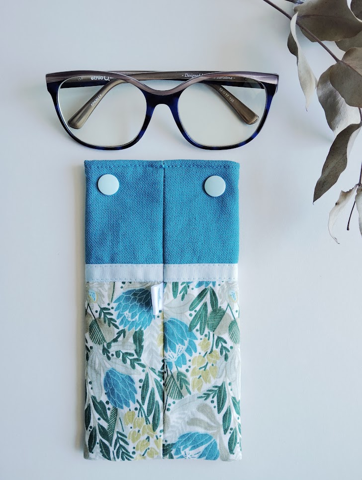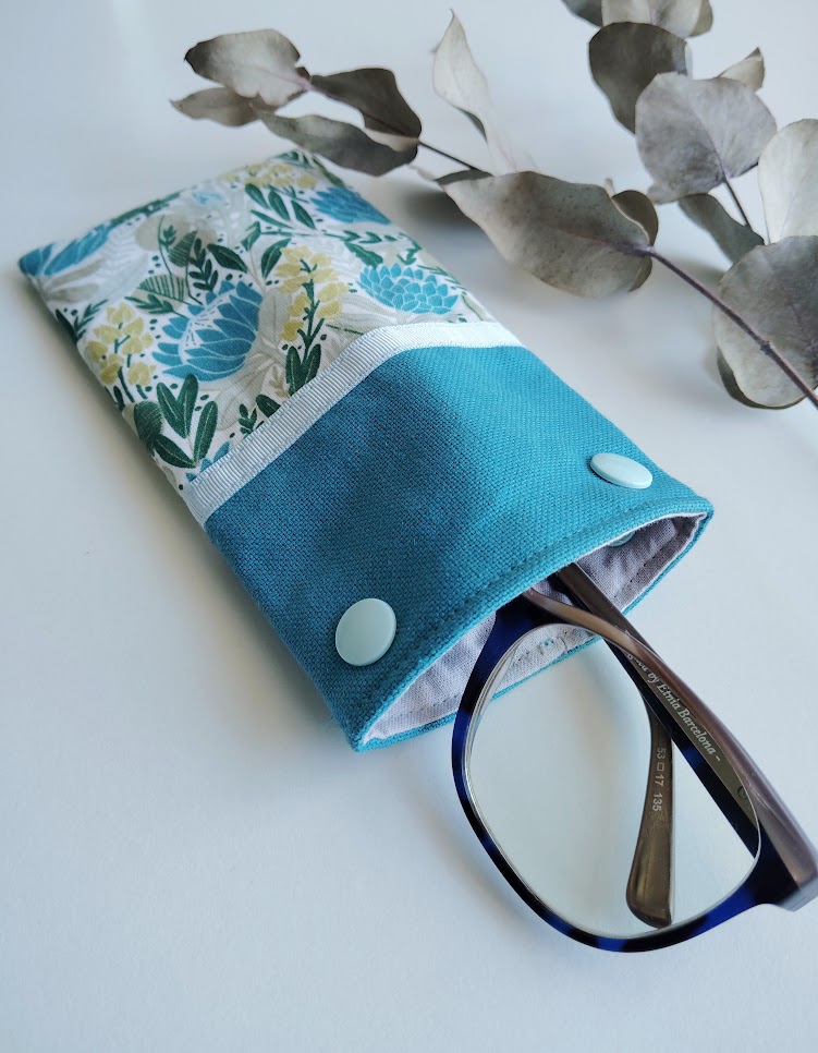 Cet étui lunettes est molletonné pour bien protéger vos lunettes. Confectionné entièrement dans mon atelier, je porte une attention particulière aux associations de matières, couleurs et imprimés. Ici l’étui est rehaussé d’un ruban gros grain et de deux boutons pression pour bien maintenir vos lunettes.